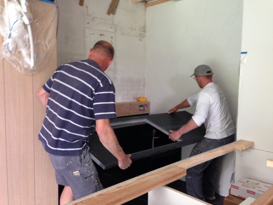 De natuursteen kan opgemeten worden als de basis van meubelwerk geplaatst is.